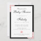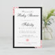 Bolinhas de convite para chás de fraldas florais, moderna e elegante, design branca e negra, cor-de-rosa e cor-de-rosa. A design apresenta um quadro preto simples e elegante com duas lindas flores rosa rosa rosa rosa rosa cor-de-rosa, que formam os cantos. A tipografia de classe é usada para criar um ponto focal, complementando estilos tipográficos para criar um olhar único e moderno. O verso do convite apresenta um padrão de bolinhas preto e branco chic que complementa maravilhosamente o design frontal. Todas as ilustrações contidas neste convite de chá de fraldas moderno e clássico são obras de arte originais desenhadas à mão pela Moodthology. Você pode personalizar o tamanho do texto, a cor do texto, a fonte e o layout para sua preferência de design pessoal.