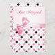 bolinhas brancas e elegantes, negras, cor-de-rosa, com efeito de fita, Bat Mitzvah Invitation. Você pode usá-lo para qualquer ocasião, fácil de personalizar - alterar fonte, cor, tamanho e adicionar seu próprio texto. Observe que: a fita é uma imagem impressa, não real. O texto "Bat Mitzvah" é uma imagem, você pode deixá-la como está ou remover e colocar seu próprio texto. No verso do Convite: Estrela de David - você pode mover esta imagem para esquerda, direita, para baixo ou simplesmente removê-la.