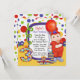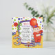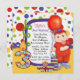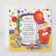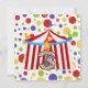 Colorido com tons primários brilhantes de vermelho, amarelo, azul e roxo. Padrão de bolinhas divertida e vela número 3, para o terceiro aniversário com presentes e garotinho doce em vermelho segurando um pirulito e um balão. Tenda de circo e design correspondente atrás. O texto está pronto para você personalizar com suas informações. Outros itens correspondentes na minha loja.