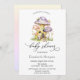 Casas de cogumelos com aquarelas e bolinhas de ombre. Esses convites para chuveiros de bebês são facilmente personalizados para seu evento simplesmente adicionando seus detalhes.