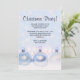 Um convite de festa de Natal com um design mágico de Natal. Decorações de árvore de Natal juntas em alguma neve branca. O fundo tem um fundo branco com borrão (luzes desfocadas) com flocos de neve caindo. Captura perfeitamente o encanto e a magia do Natal.