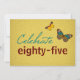 O convite de aniversário do estilo moderno 85º apresenta um salto alto projetado inteiramente a partir de borboletas, várias outras borboletas, papel de aparência de linha na frente e atrás, e áreas que você pode facilmente personalizar com o nome, a idade e as especificações de festa de aniversário dos destinatários do aniversário para a parte especial de 85º aniversário