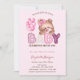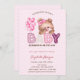 Urso de pelúcia bonito e balões nas bolinhas. Esses convites para chuveiros de bebês são facilmente personalizados para seu evento simplesmente adicionando seus detalhes.