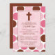 Comece o seu evento com o nosso batismo de raparigas castanhas e cor-de-rosa / convite batizante. O convite apresenta um fundo poca cor-de-rosa e castanho com uma cruz castanha. Fácil de personalizar, basta adicionar suas informações de evento e você está pronto para ir.