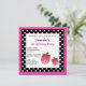 Bolinhas pretas & brancas do aniversário cor-de-rosa da morango