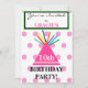 Bonito festa de aniversário para 10 anos ou outra idade. O NOME é escrito em retângulo verde da casa de dentro cor-de-rosa bonito. Chapéu de aniversário cor-de-rosa mais brilhante com tassel colorido contra bolinhas cor-de-rosa pastel em fundo branco. A parte de trás tem detalhes de eventos para personalizar em tipografia negra com fundo de pontos de rosa claro. Arte original e Design de verso de placa © TamiraZDesines