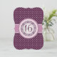 Estilo de safra - bolinhas cor roxa, borda de padrão de renda com flores ornamentais, doce Convite de festas 16.