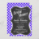 Você vai adorar este design de quadro-negro bonito, elegante e vintage com design de padrão Bolinhas Roxo Han! Convidamos vocês para nossa loja, Compro Chá de panela, para ver este design de quadro negro legal em muitos mais produtos personalizáveis excelentes, incluindo botões de noiva feminina, selos de casamento modernos e Convites de chá de panela de giz de moda! Obrigado!