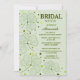 Aprecie a noiva a ser com estes adoráveis Convites de chá de panela-tema irlandeses com Shamrocks modernos estilizados e bolinhas verdes em fundo verde pastel. Placa padrão de pontos correspondente de volta. Personalize o texto com as Informações do Chá de casamento.