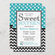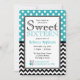Cantos arredondados, na moda doce dezesseis convites de aniversário com bolinhas brancas sobre turquesa na metade superior e um padrão preto e branco chevron zigzag na metade inferior. Personalize com os detalhes da festa e escolha o tipo de papel também!