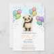 Confira este adorável convite de panda bebê aquarela azul para o primeiro aniversário do seu filho! Este design louco, que mostra um ursinho panda recém-nascido segurando um balão, é ideal para festas infantis. Este tema de animal estilo cartoon caprichoso é uma opção neutra para meninos e meninas e traz charme a qualquer celebração de primeiro aniversário.