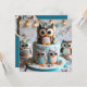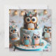 BOLO DE CORUJAS DE OLHOS GRANDES NA FRENTE É UM TEMA DIVERTIDO PARA O CONVITE DE ANIVERSÁRIO DO SEU FILHO. EDITAR CÓPIA NO VERSO