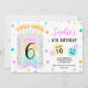 O convite para o bolo de aniversário desta menina apresenta um bolo de aniversário em camadas arco-íris com gelo branco, borrifar e velas iluminadas cercadas por confetti. No verso há um padrão de balões arco-íris. Substitua o texto do exemplo pelo seu. Veja toda a coleção correspondente.