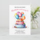 Convites Bolo de Aquarela Arco-íris e Balões Aniversário de