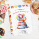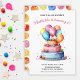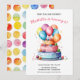 Celebre um dia especial com este Convite de Aniversário de Meninas com Bolo e Balões de Aquarela Arco-íris, apresentando um design alegre pintado à mão na frente e um padrão divertido de bolinhas no verso.