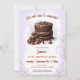 Um doce convite de festas de aniversário, compra bolo ou qualquer ocasião. Apresentava um bolo de chocolate sobre fundo roxo claro e espirais. Personalize facilmente o texto e se divirta. - Kate Eden Art