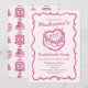 Convites Bolo de Noivado Coquette Coração Retro Rosa Cereja