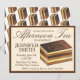 Os convites apresentam uma ilustração original de um pedaço de bolo de ópera francês. Basta personalizar com suas informações para um design único de chá de noiva, festa de noivado, aniversário ou festa à tarde.