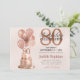 Este fabuloso convite para bolo de ouro de rosa de 80 de aniversário, com um bolo de ouro de rosa de 2 camadas com balões de ouro de rosa e o número 80 em ouro de rosa, seria perfeito para celebrar sua esposa, irmã, mãe, amiga, tia, avó ou avó excelente. É tradicional e clássico enquanto é fresco, moderno e contemporâneo. As costas são uma folha de ouro rosa.