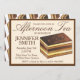 Os convites apresentam uma ilustração original feita à mão de uma fatia de bolo de ópera francês. Basta personalizar com suas informações para um design único de chá de panela, festa de noivado, aniversário ou chá da tarde.