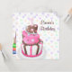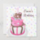 Lindos convites de festa de primeiro aniversário rosa e marrom para meninas.