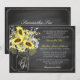 Bloco de plástico e buquê de girassol no cartão de convite de casamento do Mason jar.