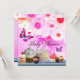 Design floral colorido elegante, com borboleta de fuchsia roxa, rosas brancas e flor de anêmona rosa, sobre fundo verde-teal. Design artístico, facilmente personalizável para doces 16 festas de aniversário, quinceanera, graduações escolares, aniversário, reuniões, festas de Férias de escritório, reuniões familiares, recepções, casas abertas e muitos outros eventos.