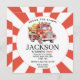 Convite de aniversário de bombeiros vermelhos de aquarela.
