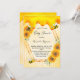Elegante, chá de fraldas divertido, neutro em relação ao gênero. Fundo amarelo com um padrão de colmeia de ouro e mel de ouro doce pingando. Com uma falsa estrutura geométrica dourada. Amarelo, girassóis cor de laranja e abelhas-deslumbradas. Com o texto: Chá de fraldas e o nome da mamãe a ser gravada na frente com um moderno script de estilo escrito à mão. Letras negras. Traseira: padrão amarelo de mel branco e pingado de mel doce.
