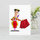 Um toureiro no anel com o touro. O matador tem uma capa vermelha. Este design parece realmente eficaz nestes Convites