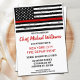 Celebre sua aposentadoria e convide amigos e família para sua aposentadoria de bombeiro com este Thin Red Line Firefire Invitation - design americano de bandeira americana em cores de bandeira de bombeiro, design angustiado. Personalize com nome, departamento de incêndio, local de endereço e detalhes de rsvp. Este convite para aposentadoria de bombeiros pode ser usado para a graduação de bombeiros, simplesmente mude o texto ao personalizar.Consulte nossa coleção para combinar presentes, favoritos para festas e suprimentos de aposentadoria de bombeiros. COPYRIGHT © 2020 Judy Burrows, Black Dog Art - Todos Os Direitos Reservados. Bombeiros de bombeiros Retiradores Convite para Bombeiros