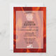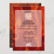 Um único convite de aposentadoria para um bombeiro. Design tem chamas no fundo, um crachá do corpo de bombeiros e capacete com o número personalizável para o motor ou estação. Fácil de personalizar com os detalhes da sua festa.