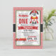 Bombeiro, festa de aniversário do tema do caminhão de bombeiros... convidada para o padrão de xadrez vermelha. Possui o bombeiro dalmaciano do cachorrinho dalmaciano e o carrinho de bombeiros vermelho. Um e primeiro aniversario podem ser personalizados para o aniversário do seu filho, filho, criança, criança ou bebê. Convite neutro para o garoto ou garota.
