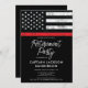 Celebre a aposentadoria de um bombeiro dedicado com este Convite de festas de aposentadoria de bombeiro personalizável! Este convite divertido e na moda apresenta uma bandeira de bombeiro Thin Red Line no topo, simbolizando honra e respeito pelos seus anos de serviço. Personalize-o com o nome e os detalhes da festa da aposentada. Perfeito para a família, amigos e colegas reunirem e comemorarem este marco especial. Torne a sua festa de aposentadoria de bombeiro inesquecível com este convite único e memorável!