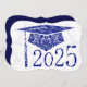Designs florais sobre boné de formatura, fundo e ano. Boné de formatura azul sobre fundo branco. O fundo tem um fundo azul com letras brancas para os convites de festa de formatura.