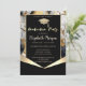 Dourado boné de formatura brilhante e confete num fundo de mármore preto.