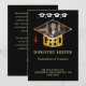 Boné de Formando Dourado e Convite para Graduação de Fotografias. "Comemore sua graduação com este elegante boné de formatura moderno e convite para a formatura em fotos de tassel. A carta apresenta um boné de formatura elegante e modesto, com uma bela tassel e um estilo minimalista e na moda. A palavra "Formando" é elegantemente tipograficamente impressa no fundo do boné, dando-lhe um aspecto distintivo. Uma foto dos formandos, capturando seu momento único, pode ser colocada em cima do boné. A foto está cercada por uma borda de ouro. Os anos são representados pelos copos. Adicione os nomes do seu formando e da escola que eles frequentaram para personalizar este cartão incrível. É a maneira perfeita de comemorar uma ocasião importante e anunciar o próximo passo empolgante em sua jornada educacional!"