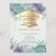 boné de formatura Dourado sobre suculentes de aquarelas.