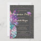 Boné de formatura brilhante, abacaxi e confete em fundo de cinza.