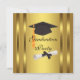 Dourado antecedente com boné de formatura preto e ouro e convite para festa de formatura de diploma. Personalize com detalhes de sua parte, estilo de fonte e cor de fonte.