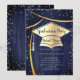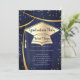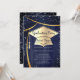 Dourado quadro de boné de formatura e diamante em um fundo azul marinho.