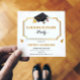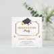 Um quadro simples de ouro com boné de formatura preto e diploma sobre fundo branco