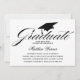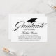 © Designs socialitas. Nossa elegante escrita / caligrafia texto e boné de formatura "formando", com texto preto sobre fundo branco, adiciona um toque de simples elegância a este convite de formatura. Substitua facilmente nosso texto de modelo para o seu evento especial.