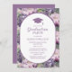 Convite para festas de formatura floral e boné de formatura, em roxo, para a classe de 2024 ou para qualquer ano. O texto é personalizável, então faça dele seu. Entre em contato comigo para obter assistência com a personalização ou para solicitar produtos correspondentes.