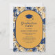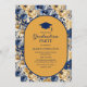 Convite para festas de formatura floral e boné de formatura, azul Dourado e marinho, para a classe de 2024 ou qualquer ano. O texto é personalizável, então faça dele seu. Entre em contato comigo para obter assistência com a personalização ou para solicitar produtos correspondentes.