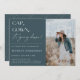 BONÉ, GOWN, está caindo! Contemporâneo convite para fotos de festa de formatura. Design de tipografia moderna em fundo de cor de rosa rico com padrão geométrico de prata falsa de apoio.