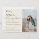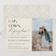 BONÉ, GOWN, está caindo! Contemporâneo convite para fotos de festa de formatura. Design de tipografia moderna em fundos coloridos de creme bege com padrão geométrico de prata falsa.