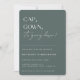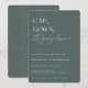 BONÉ, GOWN, está caindo! Convite de festa de formatura contemporâneo. Design de tipografia moderna em planos de cor verde de caçador silencioso com padrão geométrico de prata falsa.