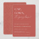BONÉ, GOWN, está caindo! Convite de festa de formatura contemporâneo. Design de tipografia moderna sobre fundo de cor rústica de coral com padrão geométrico de ouro falso.