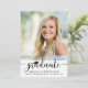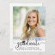 Convide os convidados para a festa de formatura do seu formando com este convite fotográfico com uma fotografia e um FORMANDO de título de script de caligrafia elegante, acentuado por um boné de formatura a preto em branco, com detalhes da festa no verso. ASSISTÊNCIA: para obter ajuda com a modificação ou personalização do design, transferir o design para outro produto ou, se você quiser coordenar itens, entre em contato com o designer ANTES DE ENCOMENDAR através da guia MENSAGEM de Bate-papo Zazzle ou envie um email para makeitaboutyoustore@gmail.com.